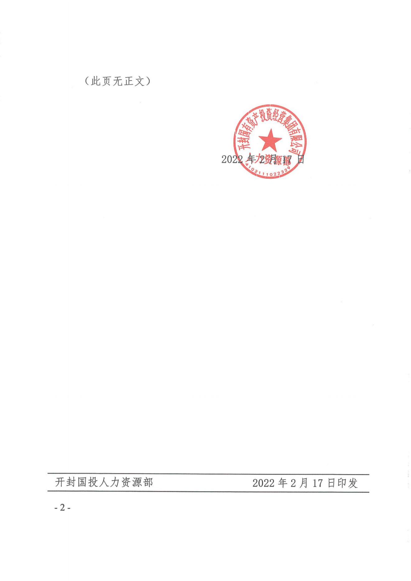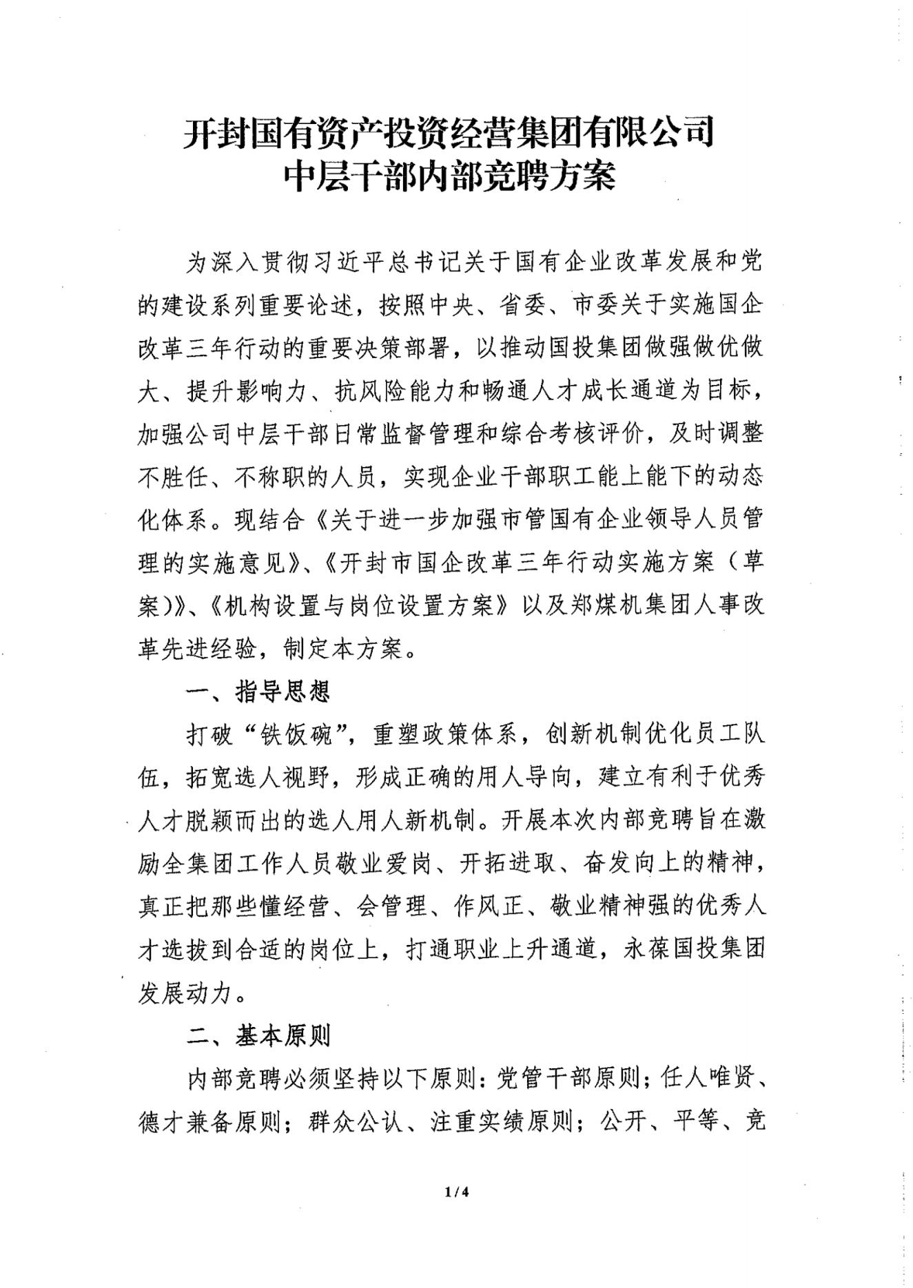 關(guān)于下發(fā)《開封國有資產(chǎn)投資經(jīng)營集團有限公司中層干部內(nèi)部競聘方案的通知》