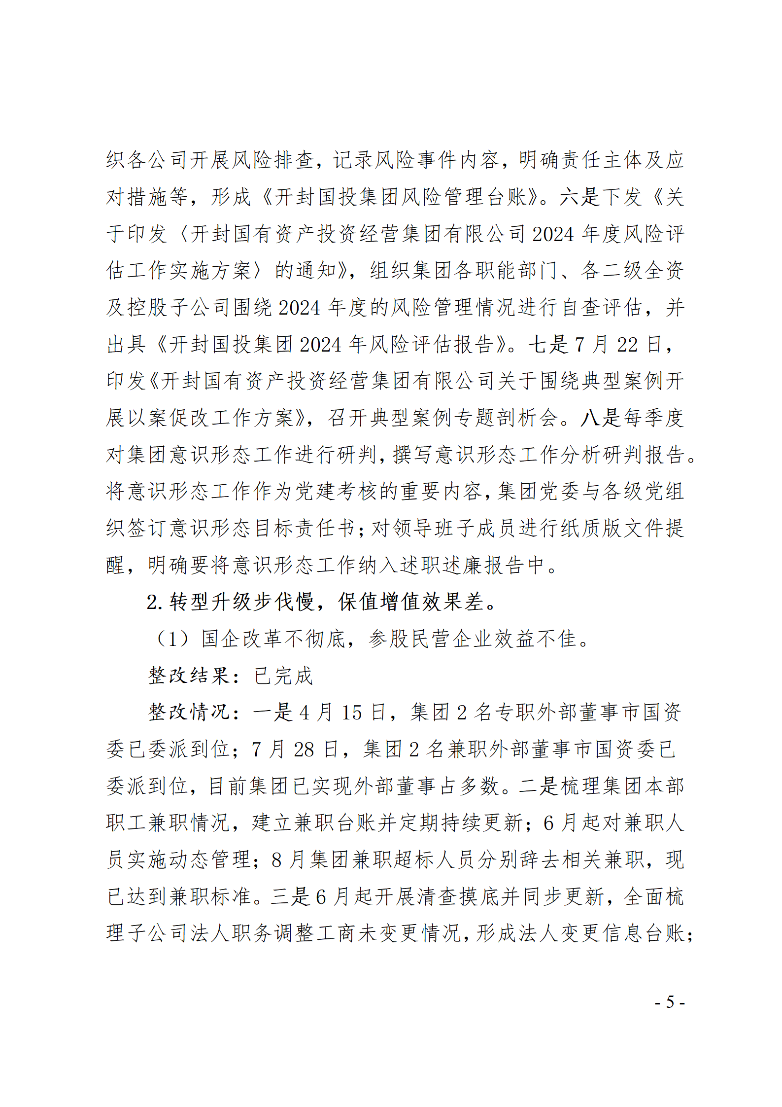 開封國有資產(chǎn)投資經(jīng)營集團(tuán)有限公司黨委關(guān)于巡察整改情況的通報